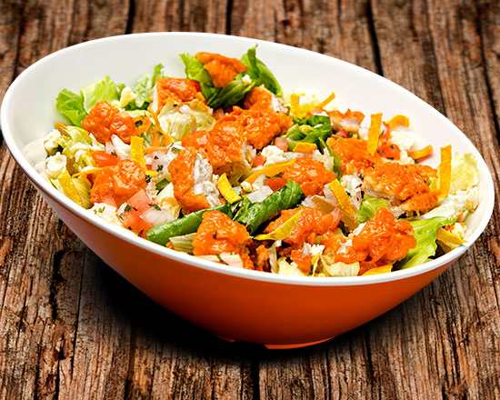 La ensalada favorita de Las Alitas, con pechuga de pollo (115 g) empanizada bañada en tu salsa favorita sobre lechugas mixtas, queso Monterrey Jack, pico de gallo y tiritas de tortilla doradas al momento.