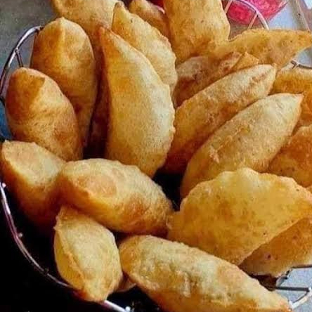masa frita con carne y queso una pieza con salsa.