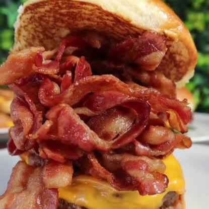 hamburguesa con tocino extra agua de sabor natural 100% papas fritas procion