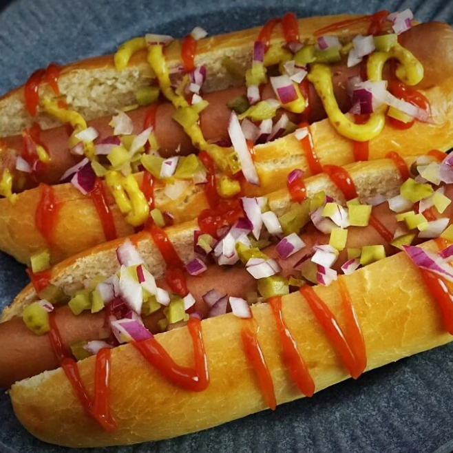 incluye 1 hot dogs con pan, verdura, aderezo, chiles y mas !
