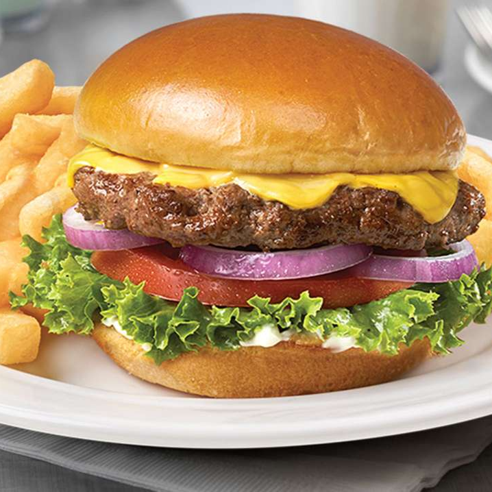 Carne de res, queso amarillo, lechuga, tomate, cebolla, pepinillos, mayonesa, catsup, mostaza
