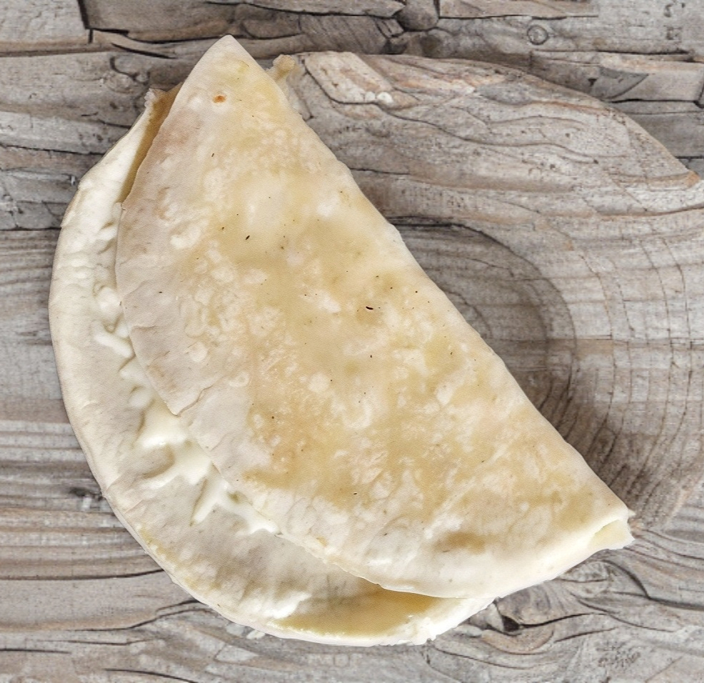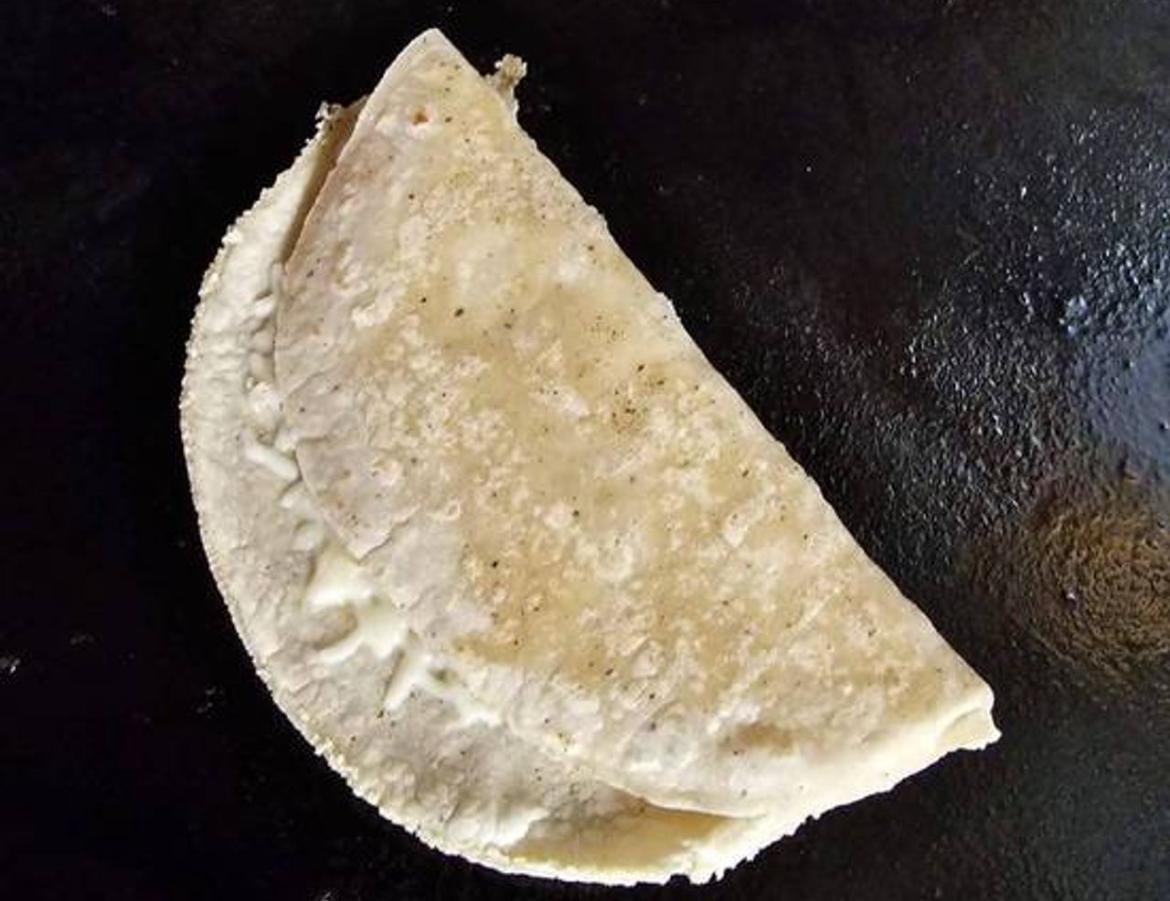 Tortilla de harina, cilantro, cebolla, queso Monterrey Jack, carnita de puerco.