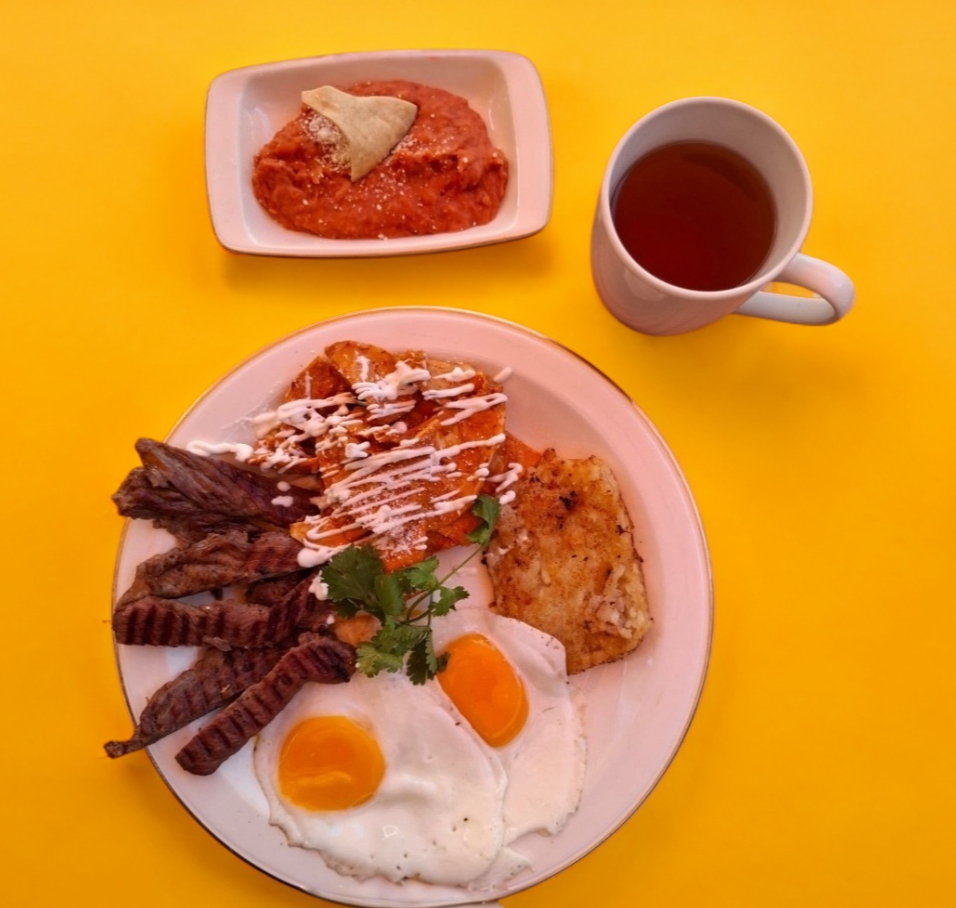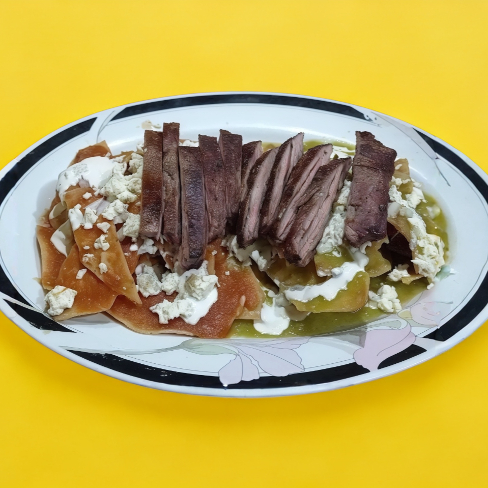 HUEVO REVUELTO ARRACHERA CHILAQUILES FRIJOL Y PAPA Y CAFE