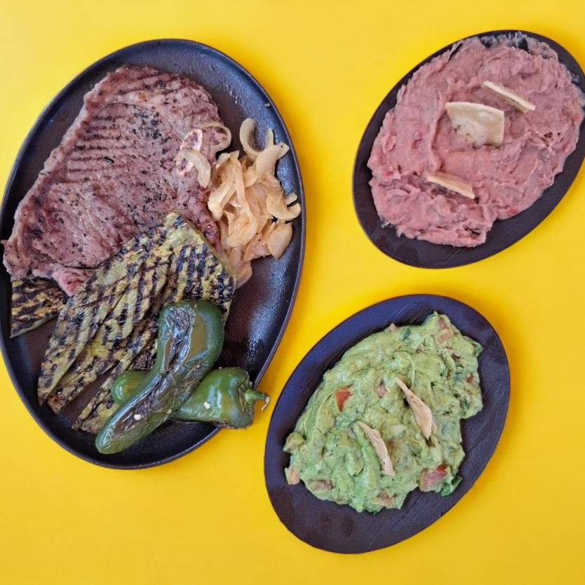 CON FRIJOL GUACAMOLE NOPAL Y TORTILLAS