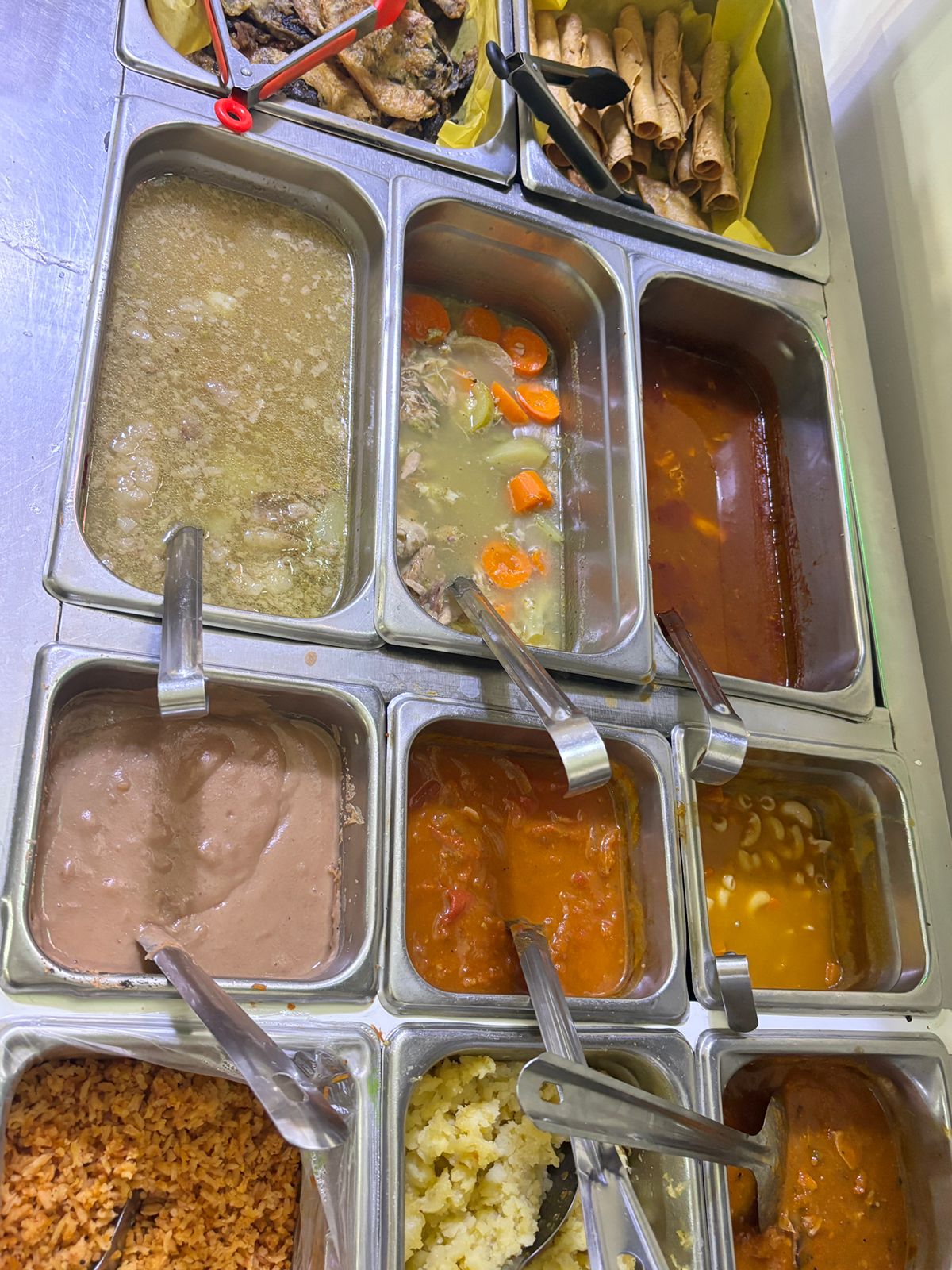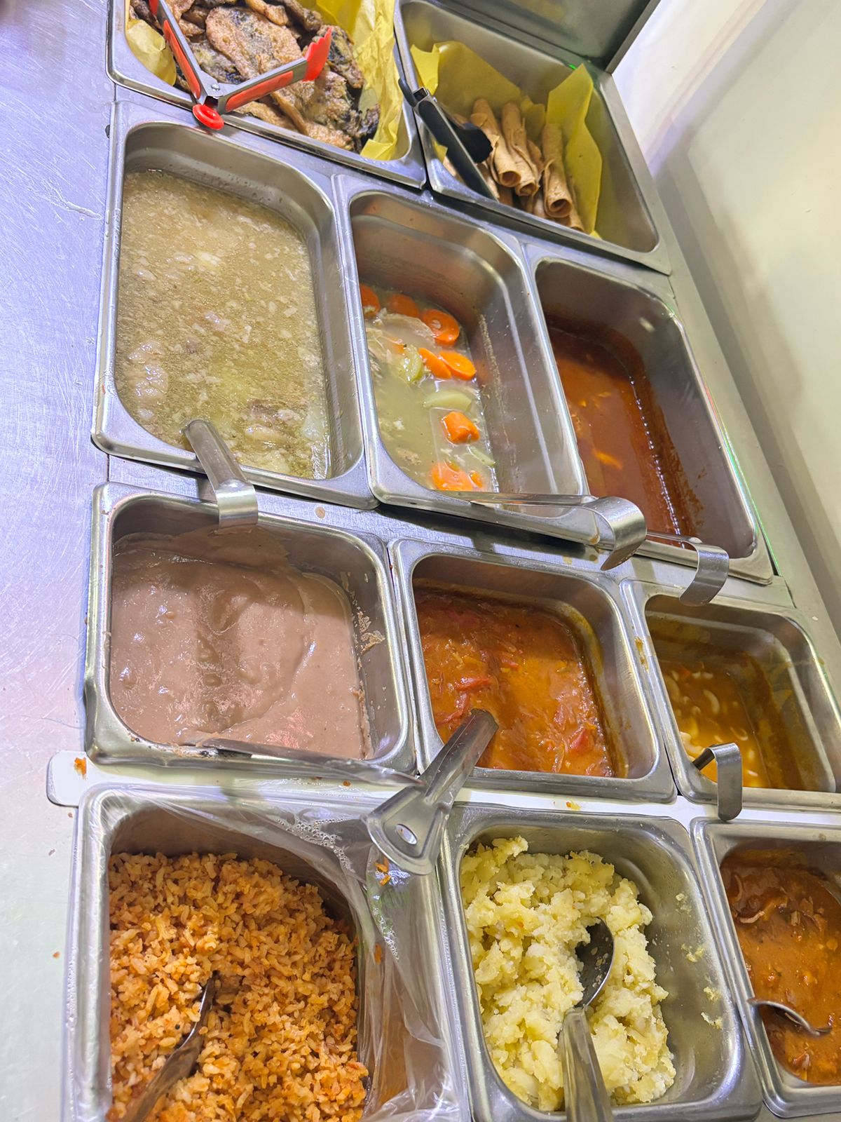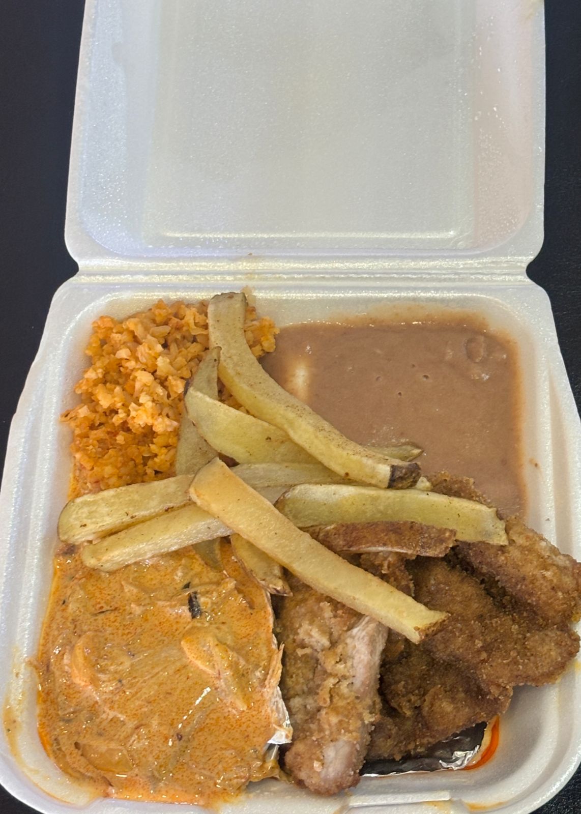 Platillo para máximo dos personas. Elige dos guisos, acompañados de frijoles, arroz y papas a la francesa.