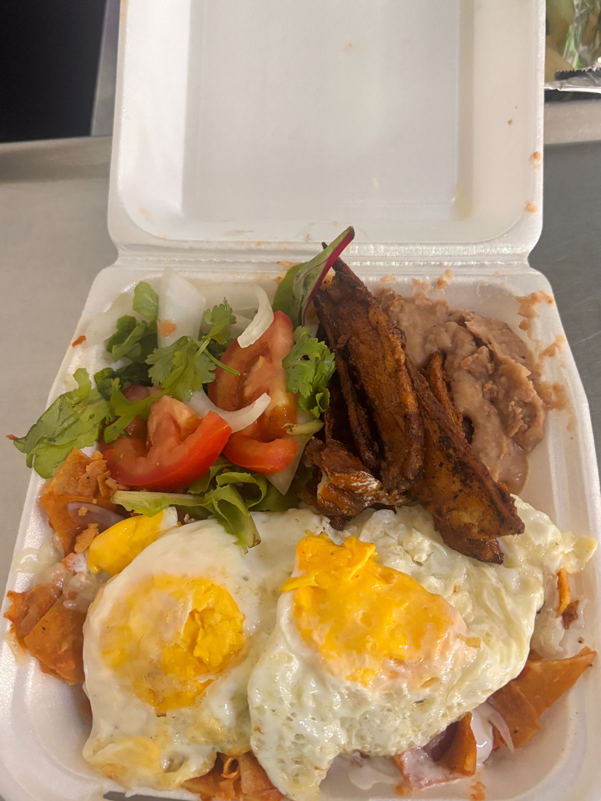 Chilaquiles Salsa Roja con Huevos Estrellados