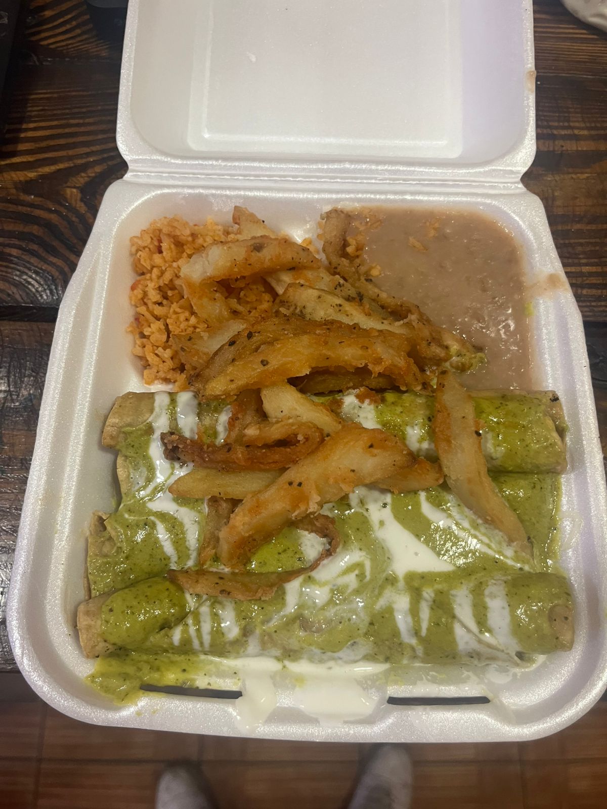 Complementado con arroz,cebolla,cilantro , limón,salsa y tortillas