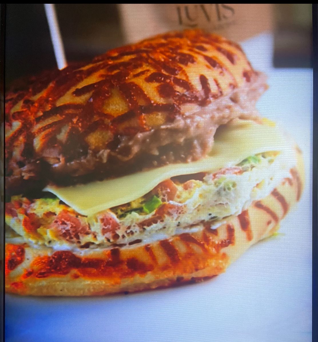 Huevo, tocino, jamón y queso americano.