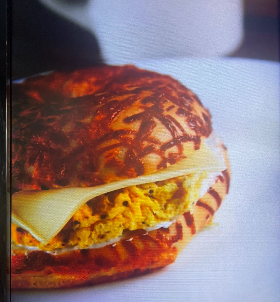 Bagel natural, huevo, queso americano y queso crema.