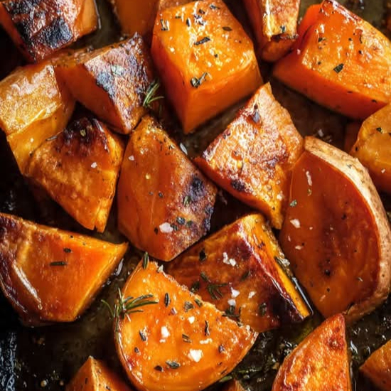 Roasted in Garlic Olive Oil Sweet Potatoes