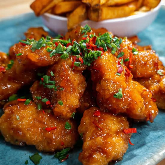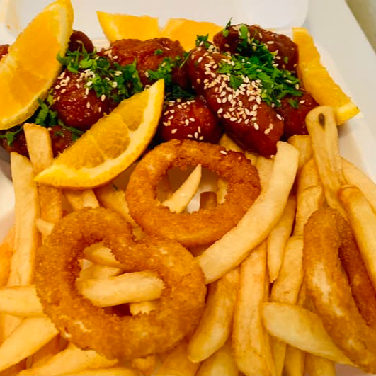 Crispy Boneless Orange Chicken Breast with Fries