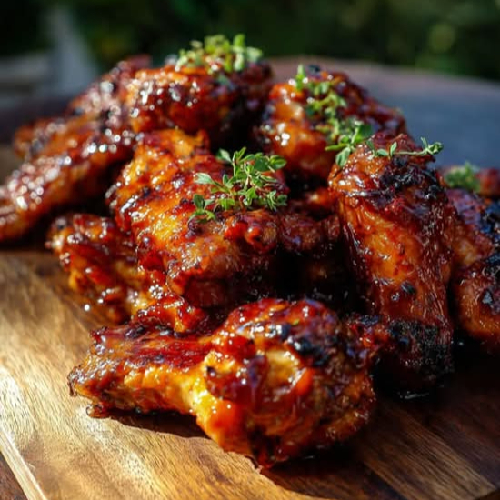 Roasted Chicken Wings BBQ Style with Fries