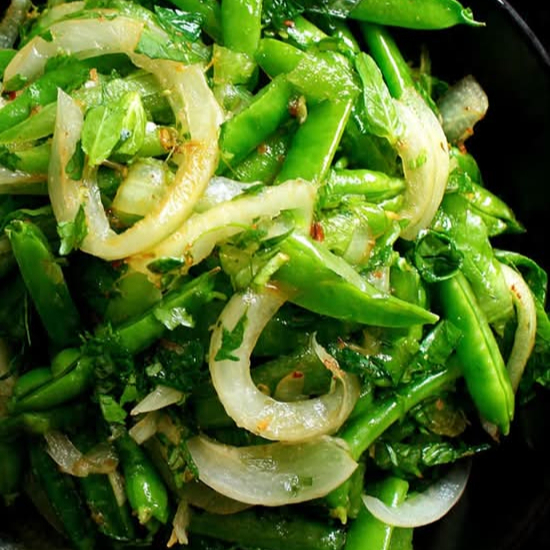 Stir Fried Organic Snow Peas with Onion