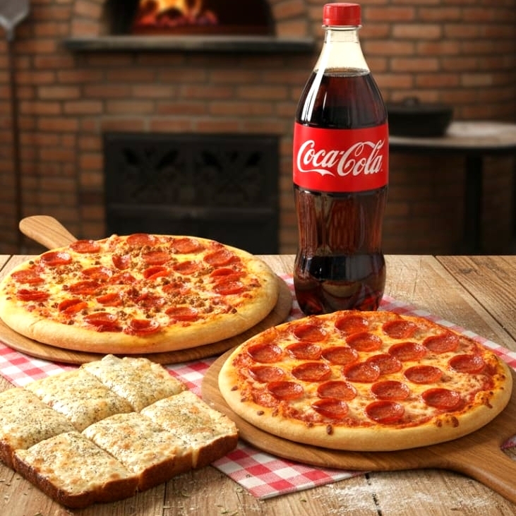 Pizza de Peperoni.*1 + Pizza Italiana.*1 + Pan de Ajo*1 + Coca Cola 2 L*1