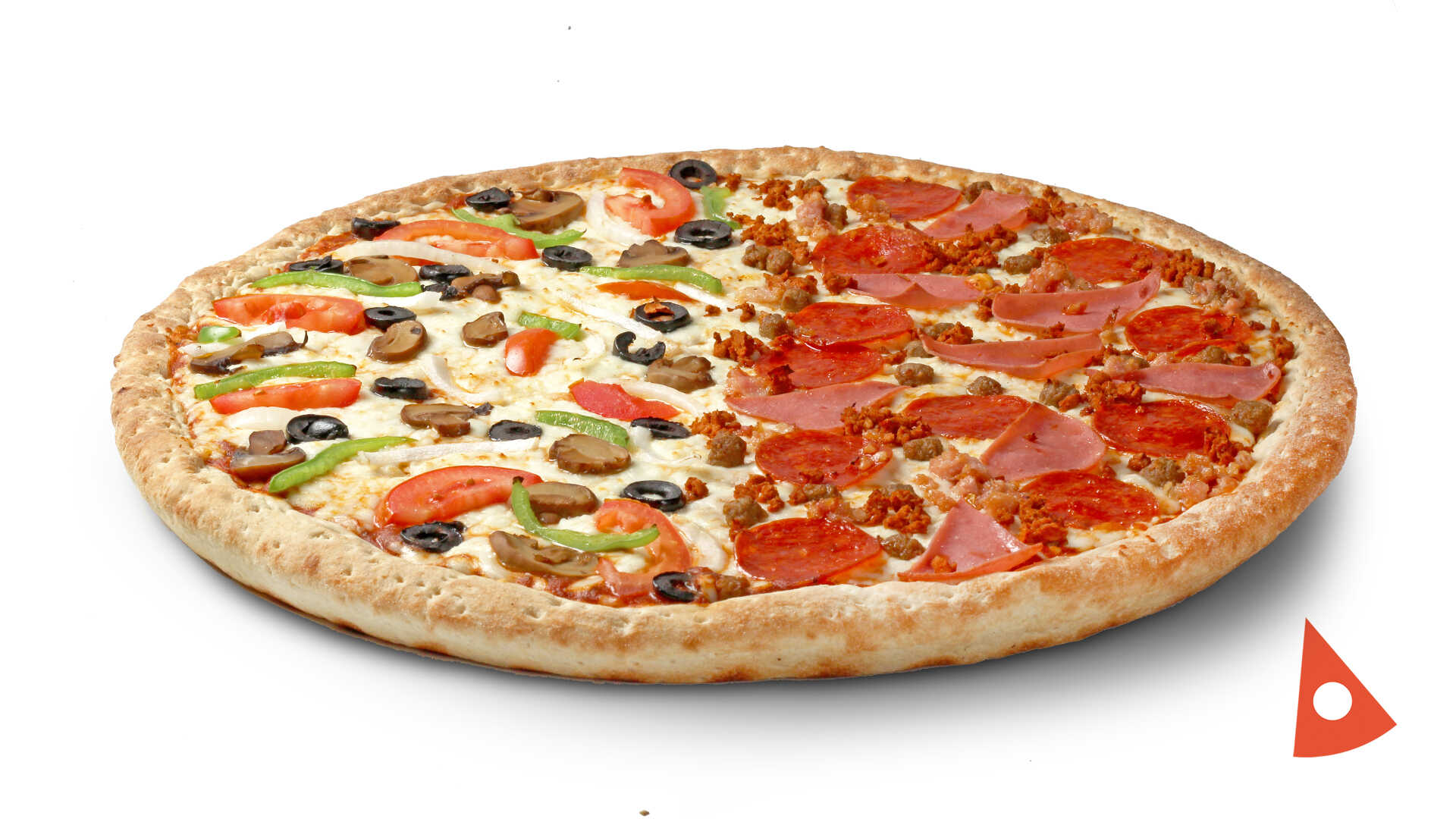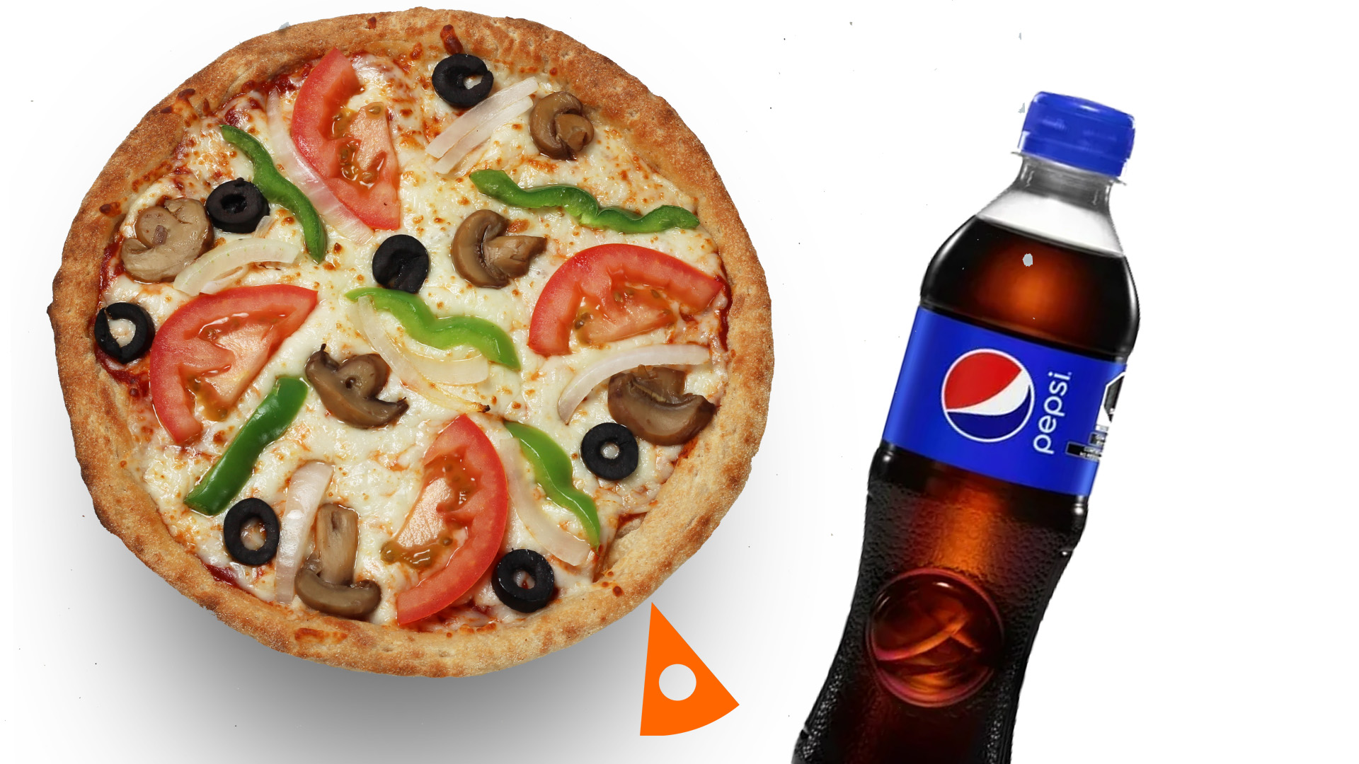 Fresco tomate, cebolla, jugosos champiñones, aceituna negra, chile morrón y queso 100% mozzarella con salsa de tomate, incluye una soda de 450 ml.