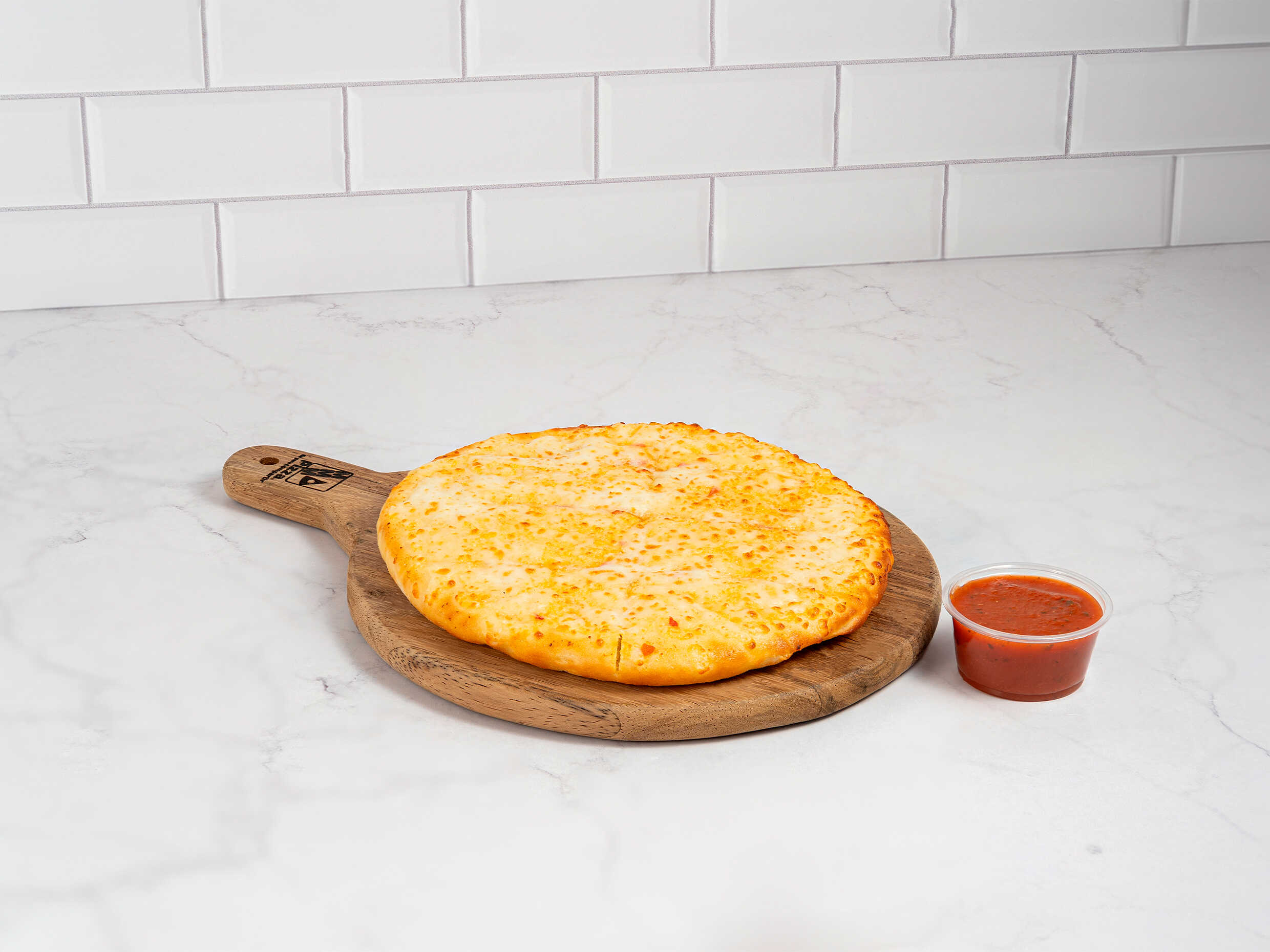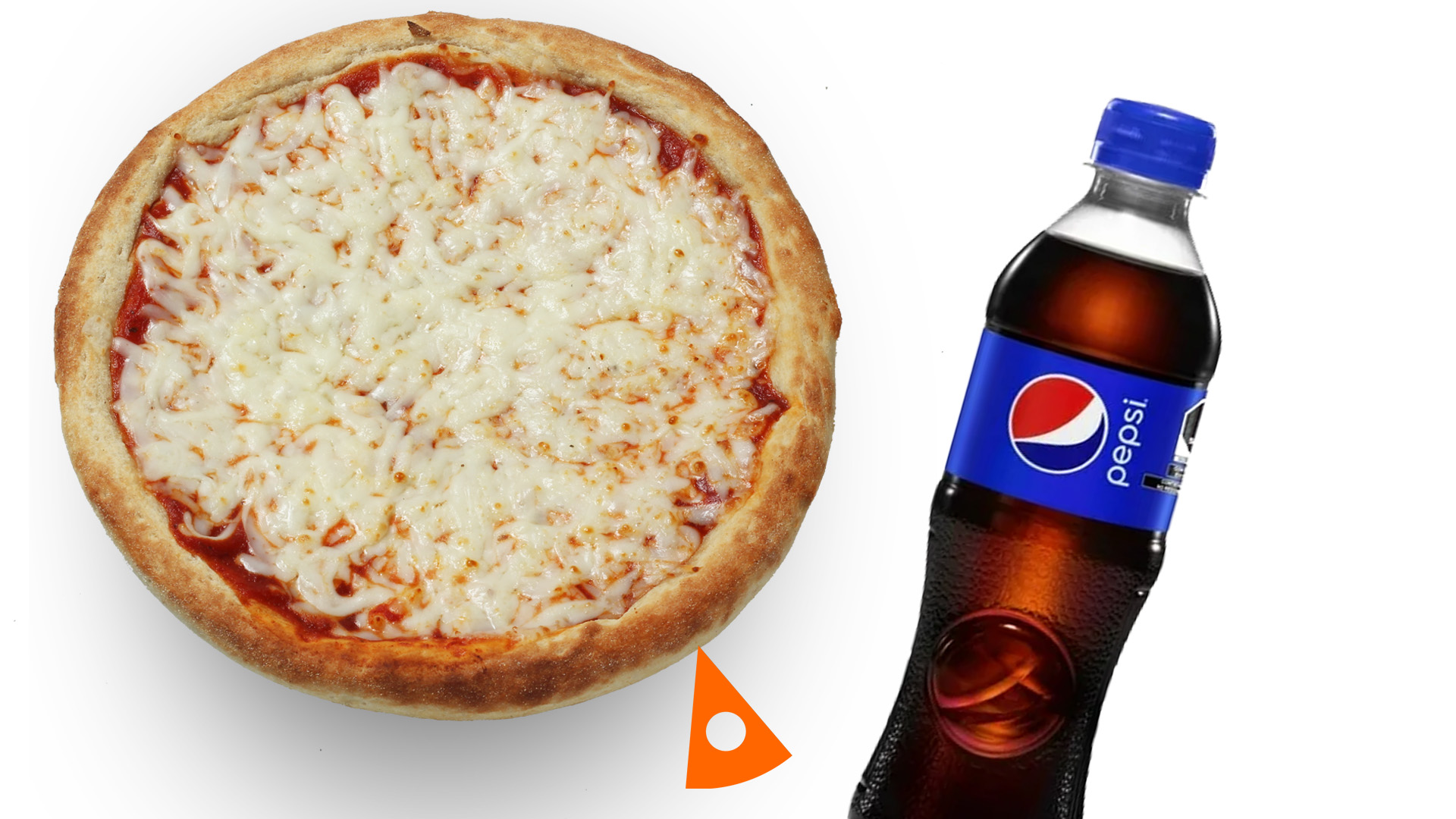 Delicioso queso 100% mozzarella en una exquisita base de salsa de tomate y una soda de 450 ml.