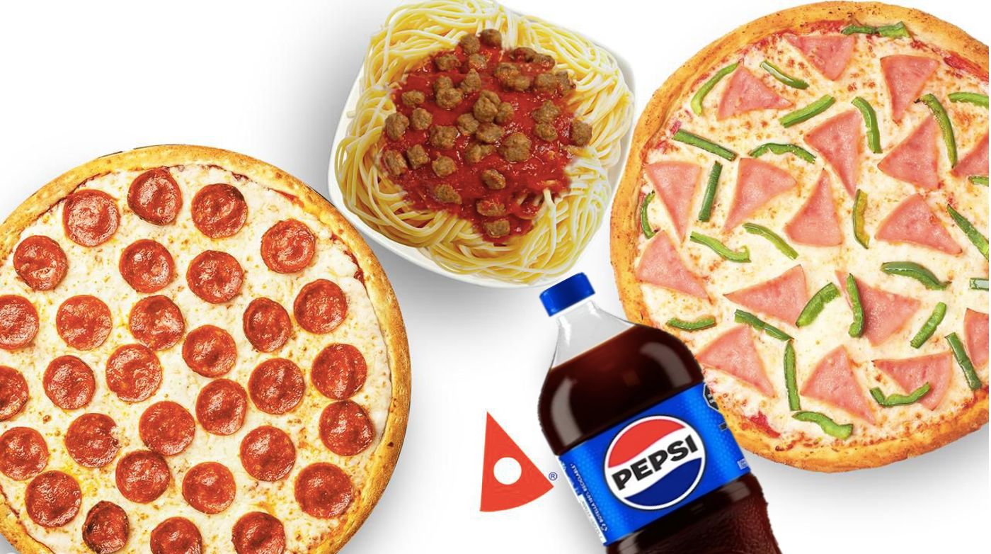 Pizza Grande*2 + Sodas 2 L*1 + Espagueti XL*1