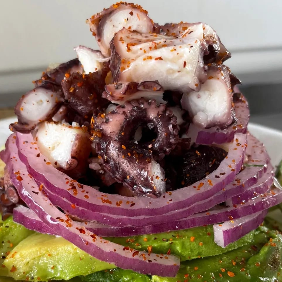 Deliciosa Tostada de pulpo con el inigualable sazón de la casa.