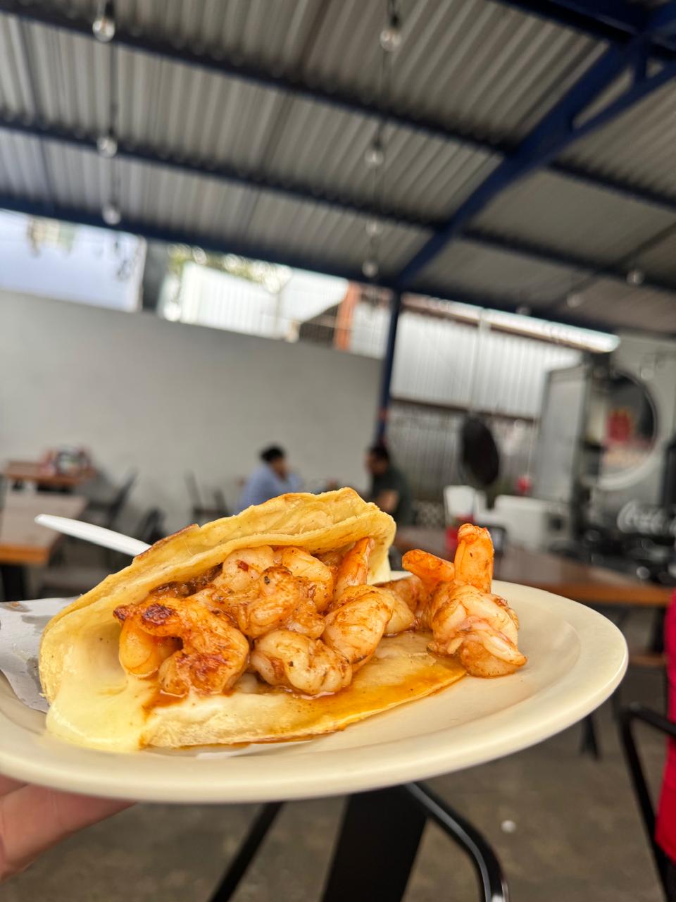 Quesadilla de camarón enchilado, especialidad de la casa.
