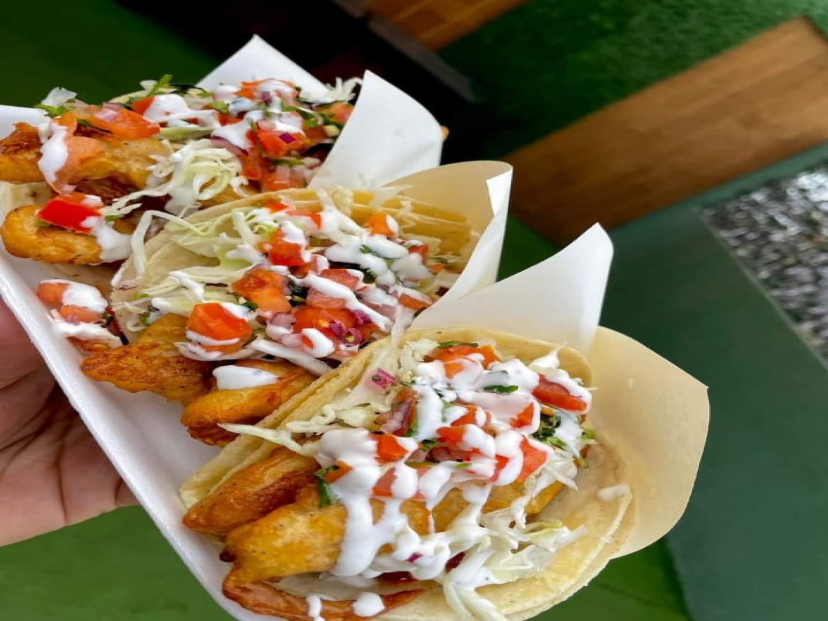1 taco de pescado, 1 taco de camarón, 1 taco de Marlín, 1 consomé y 1 Soda