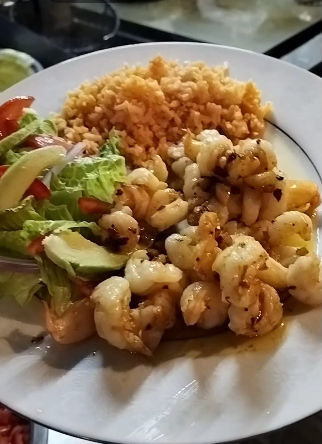 Ajo picado guisado con mantequilla, Guarniciones: Ensalada,Arroz , tortillas aparte y salsa aparte