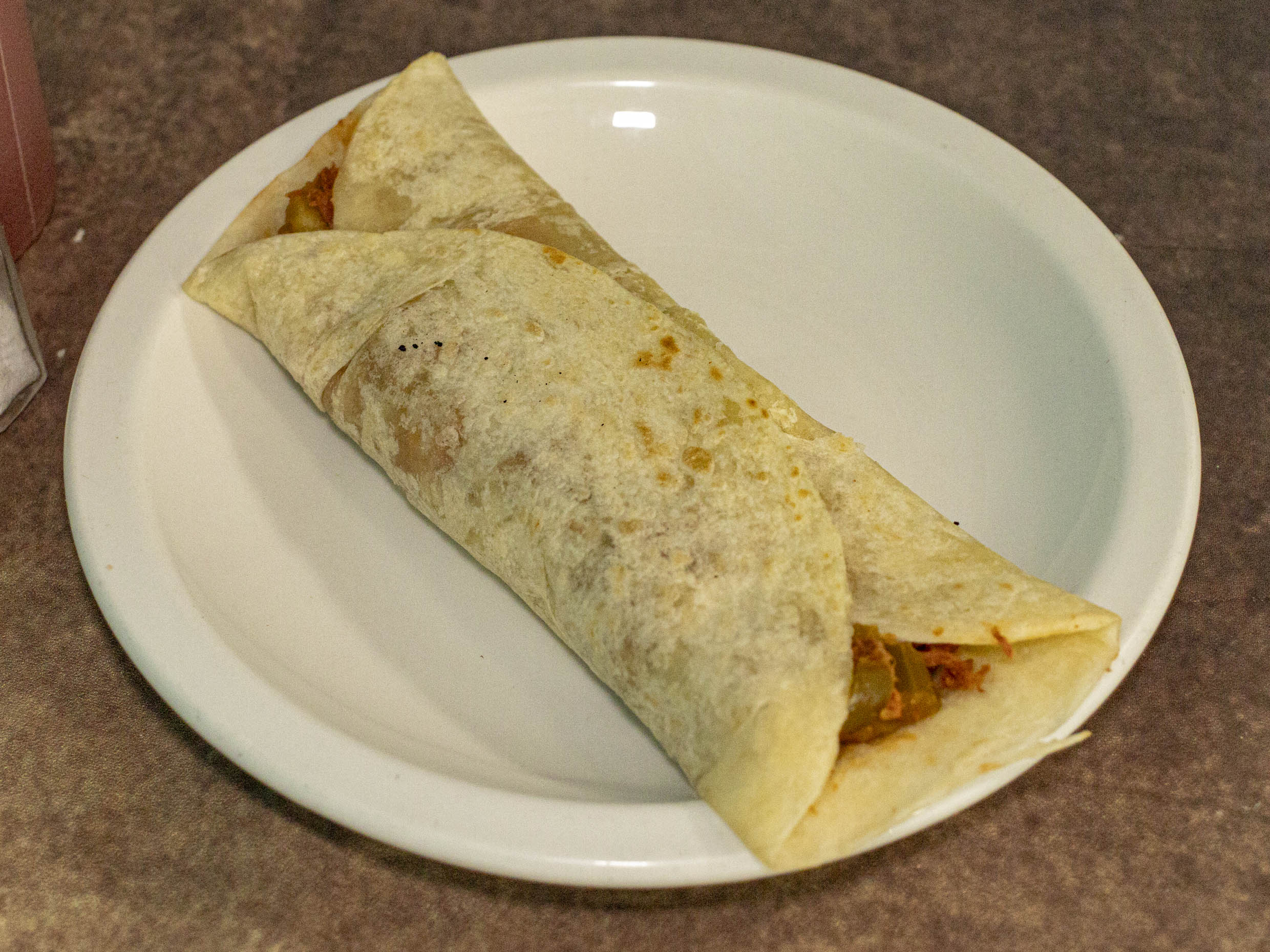 Morrones verdes, cebollas asadas, tomate y queso Monterrey.