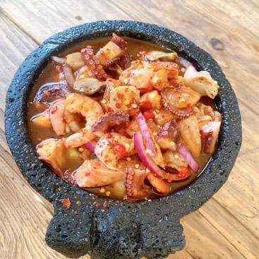 Molcajete de Camarón Crudo y Cocido con Pulpo