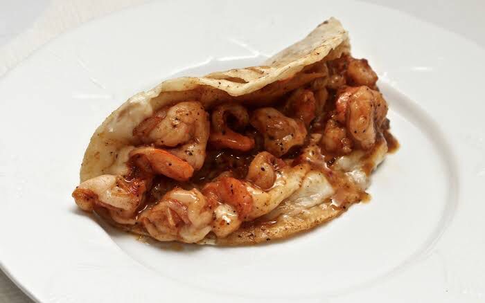 Tica quesadilla de camaron con tortilla de harina