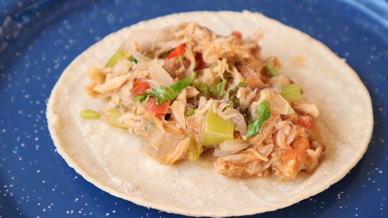 Delicioso estofado de manta acompañado de pico de gallo, repollo, crema y salsa.