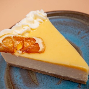 Cremoso postre con base de galleta y suave toque de limón natural y una bola de nieve