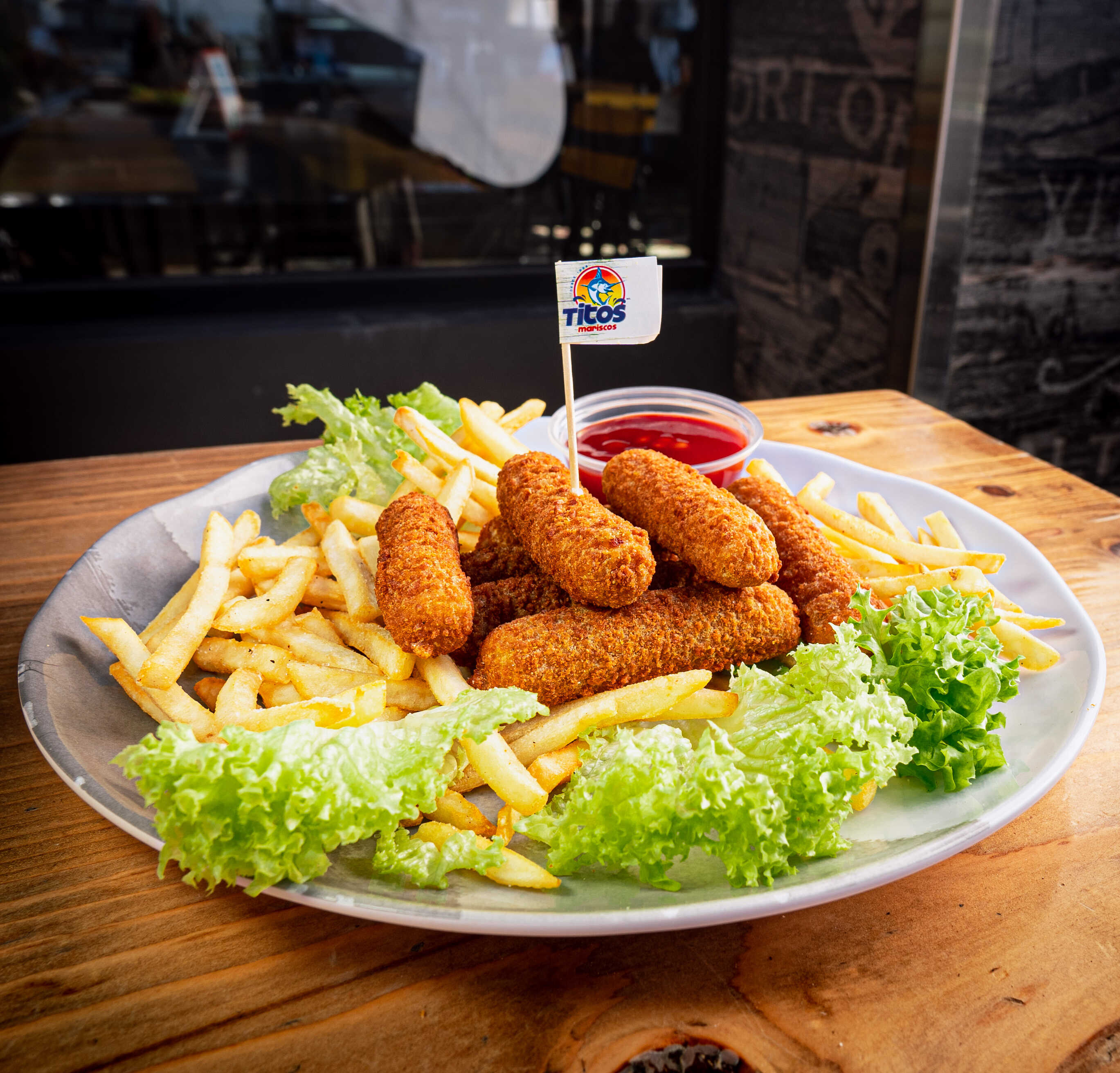 chicharron de puerco,chicharron de pulpo,chicharron de pescado papas francesa
