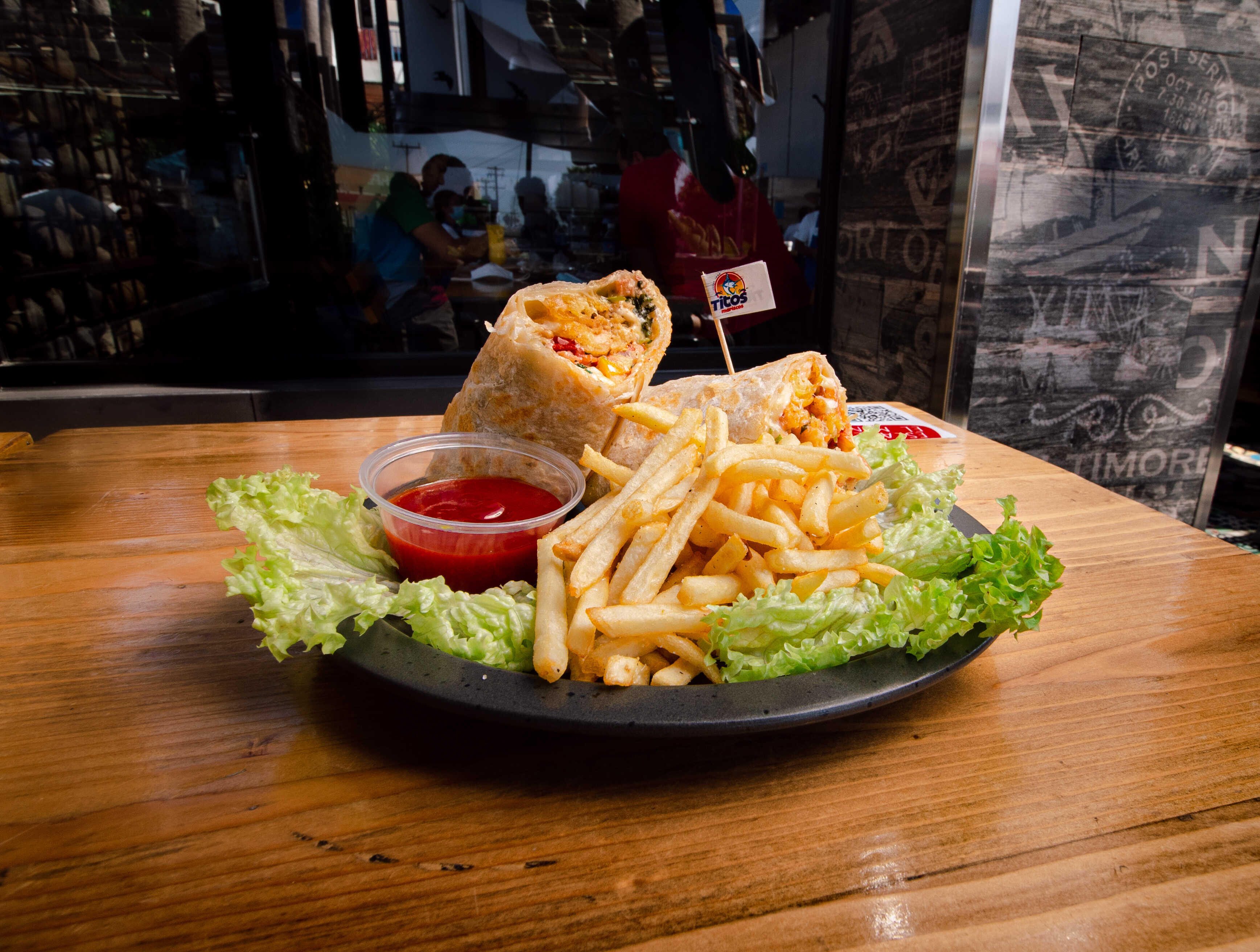 Burrito de Camarón Capeado con Papas*1 + Agua de Horchata*1