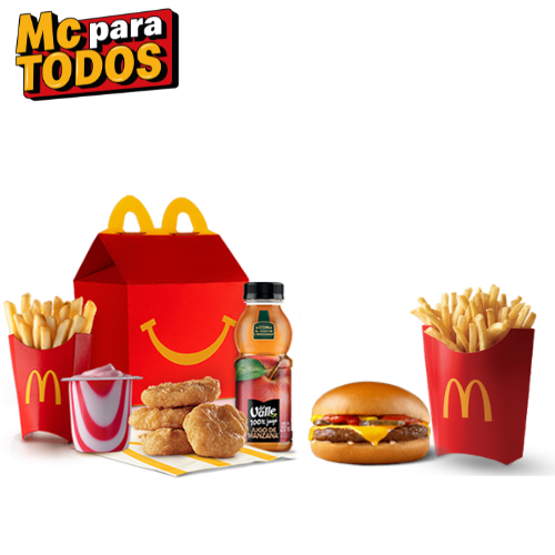 Cajita Feliz 4 McNuggets + Hamburguesa con Queso + Papas grandes