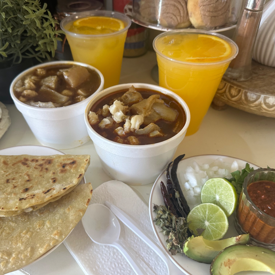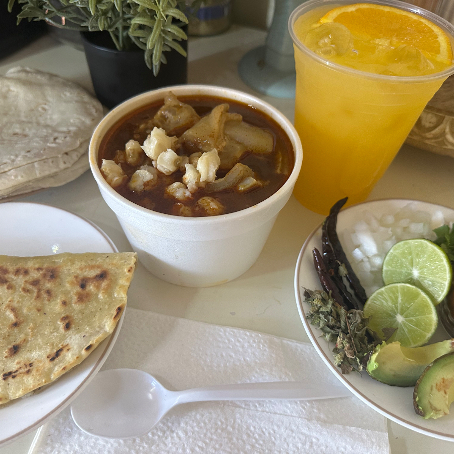 Paquete familiar que incluye 2 menudos chicos, 2 quesadillas de maíz y 2 aguas del día.