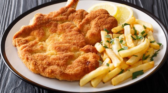 Carne de chivo dorada y puesta en su caldo con todos sus complementos