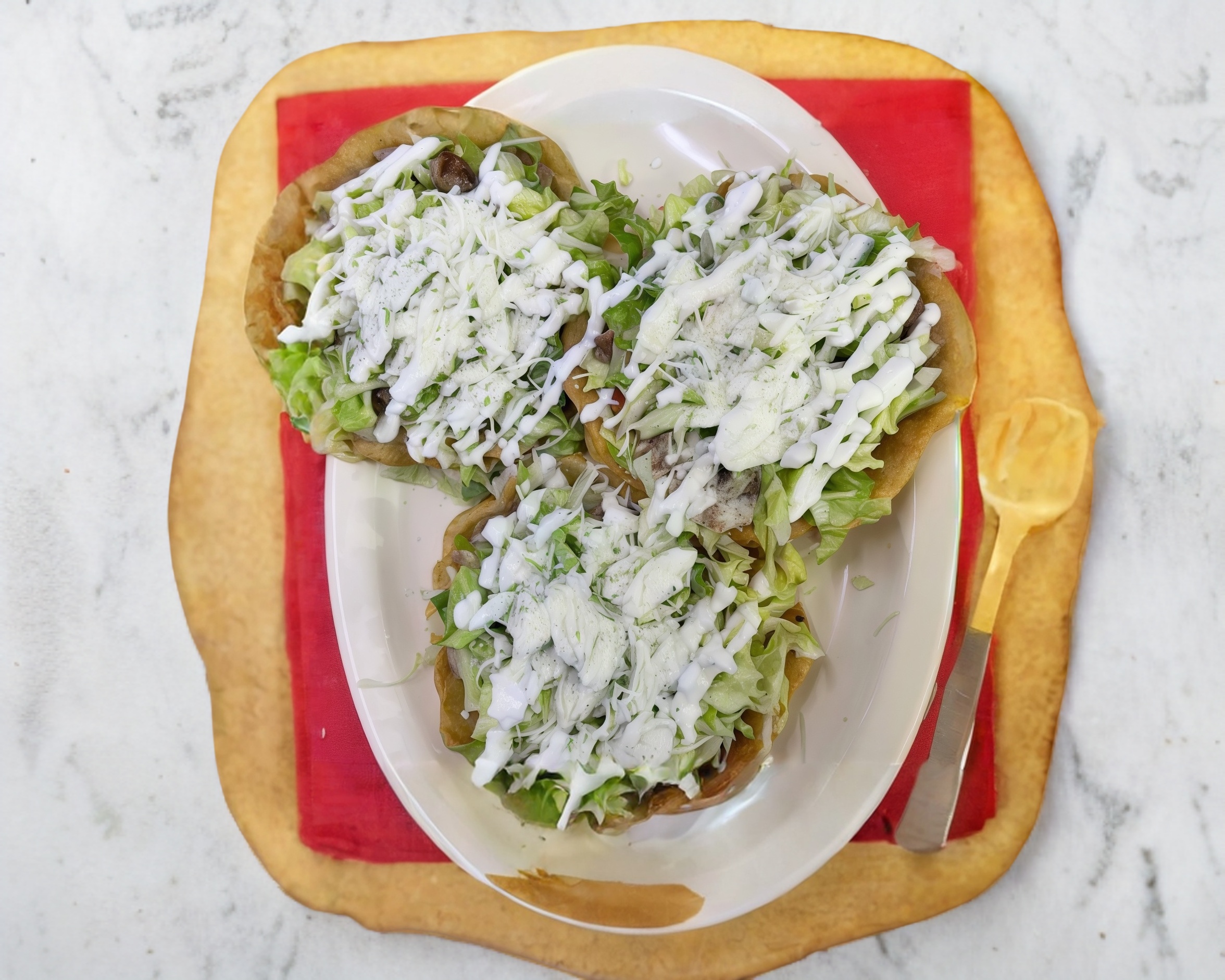 De pollo o dehebrada , con lechuga zanahoria cebolla queso y crema y salsa picante