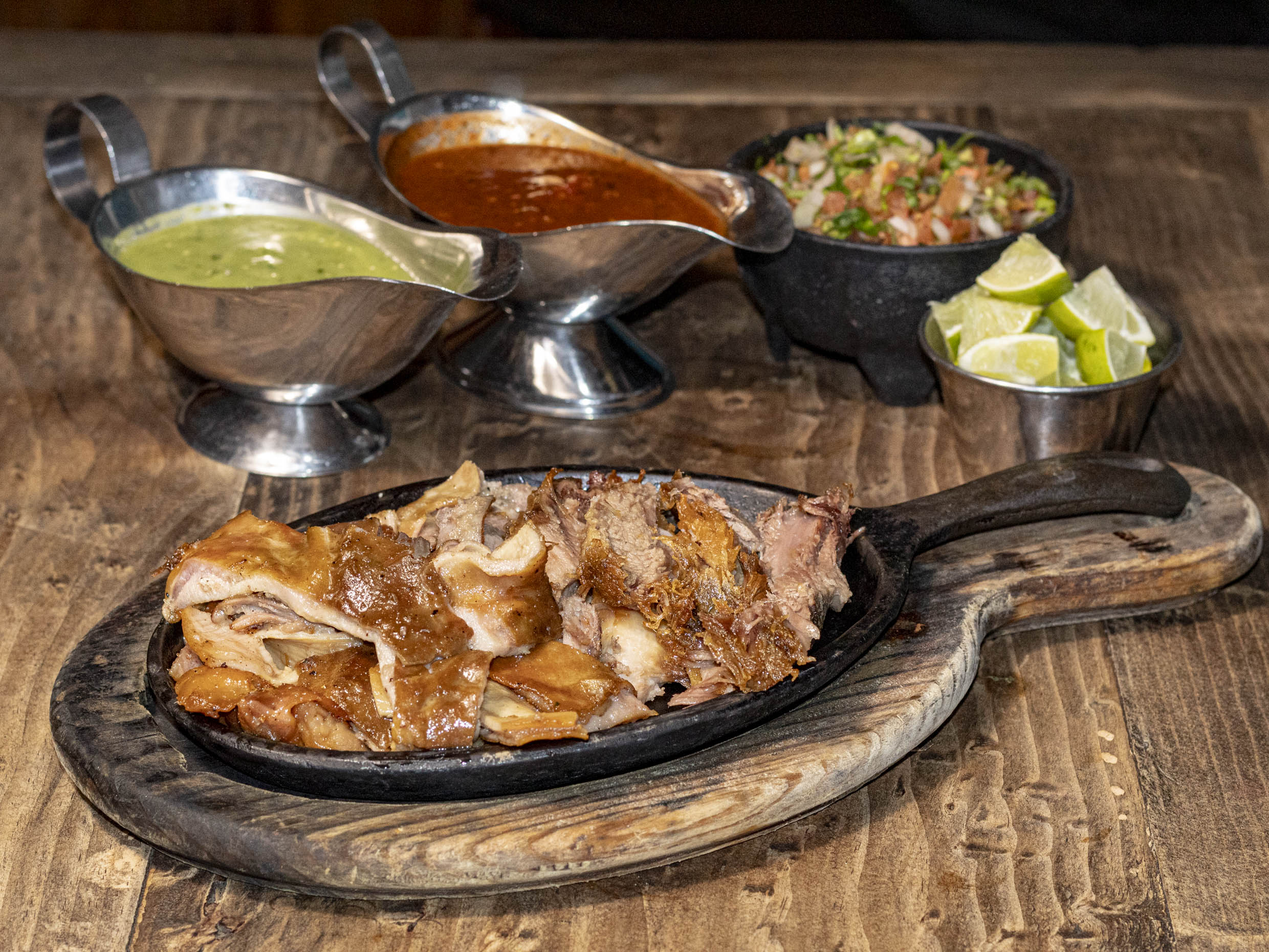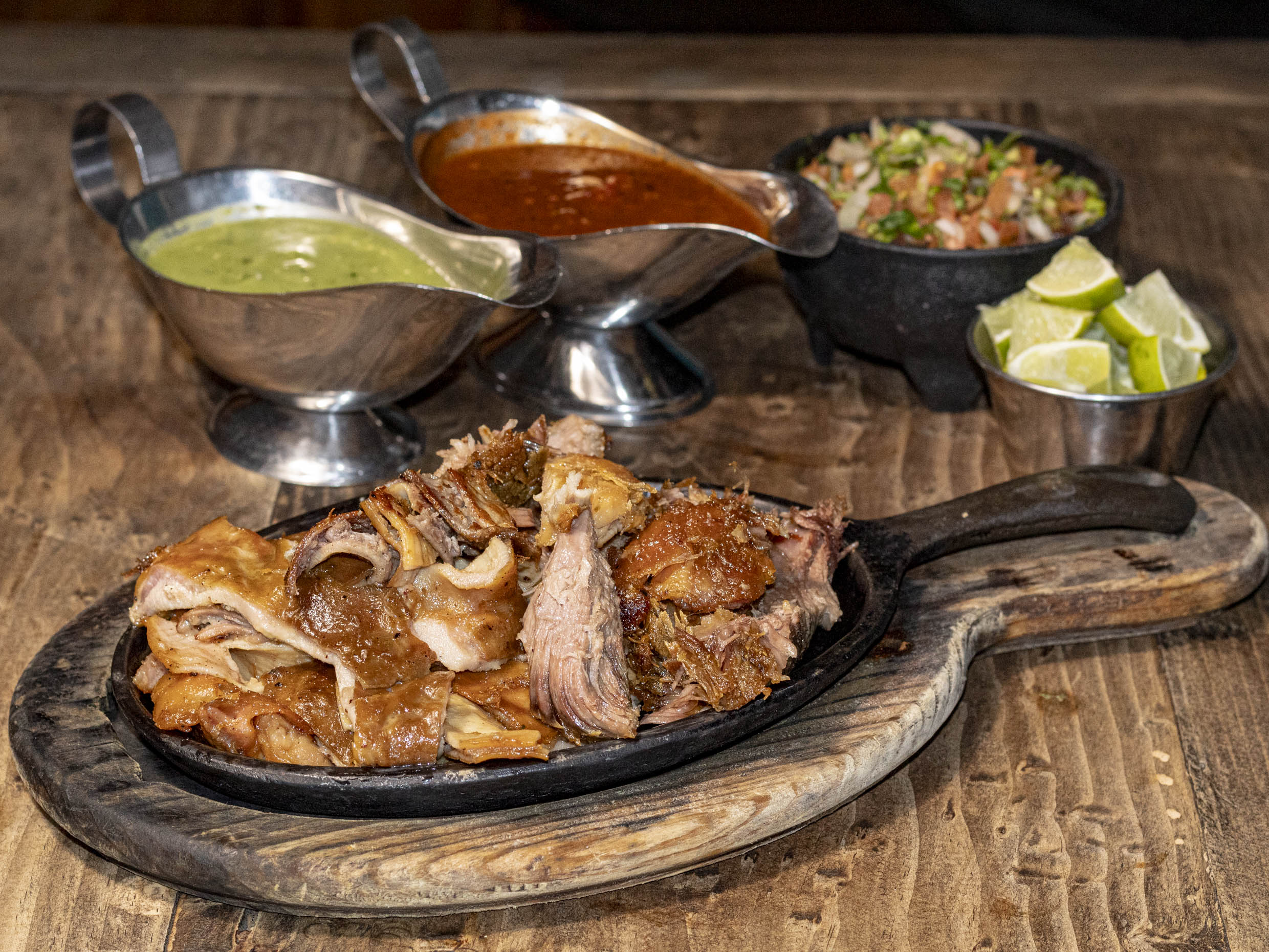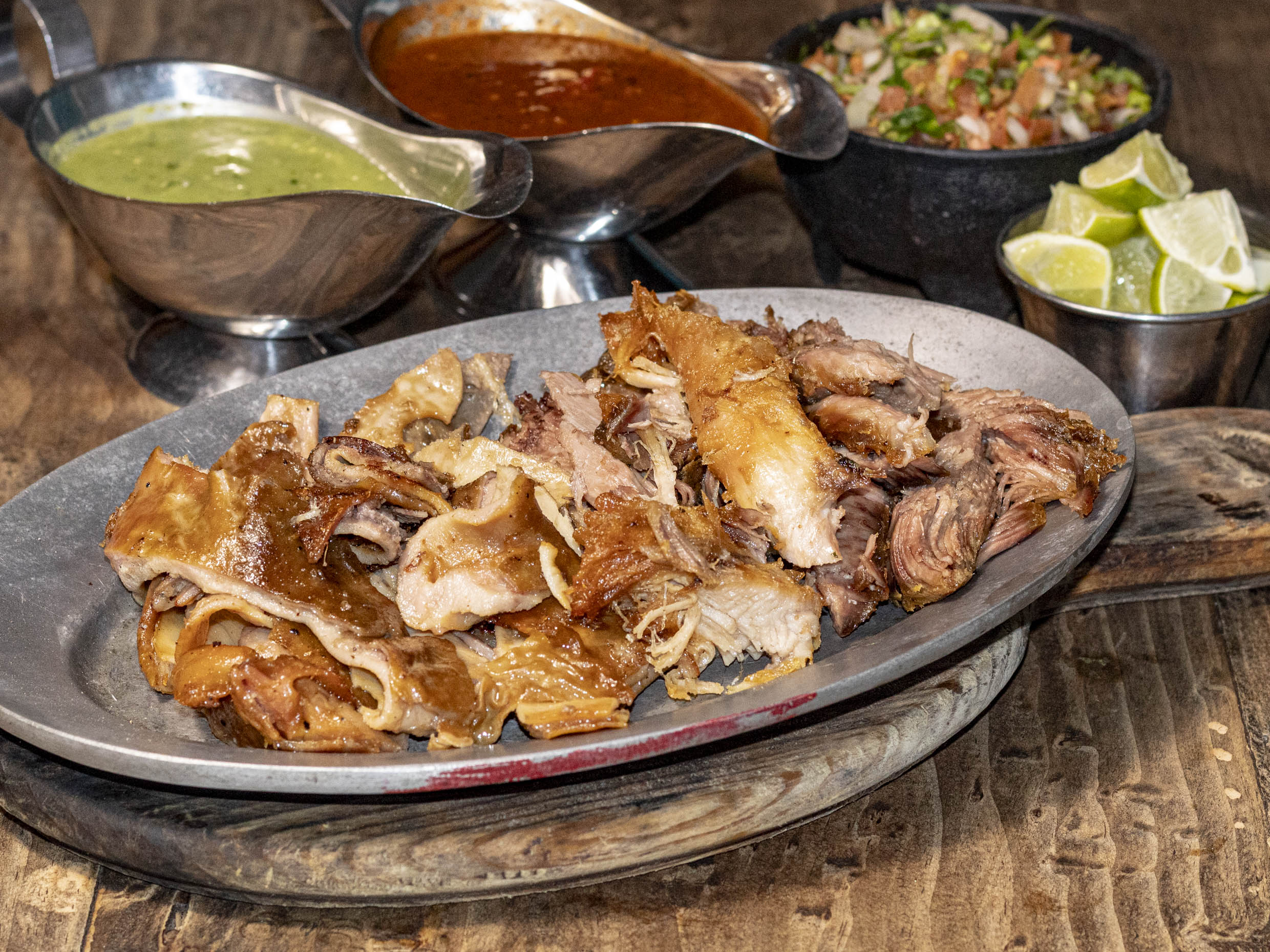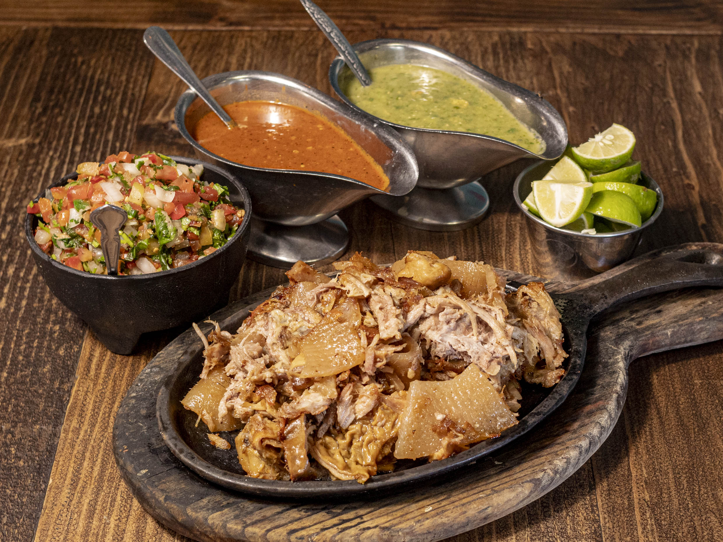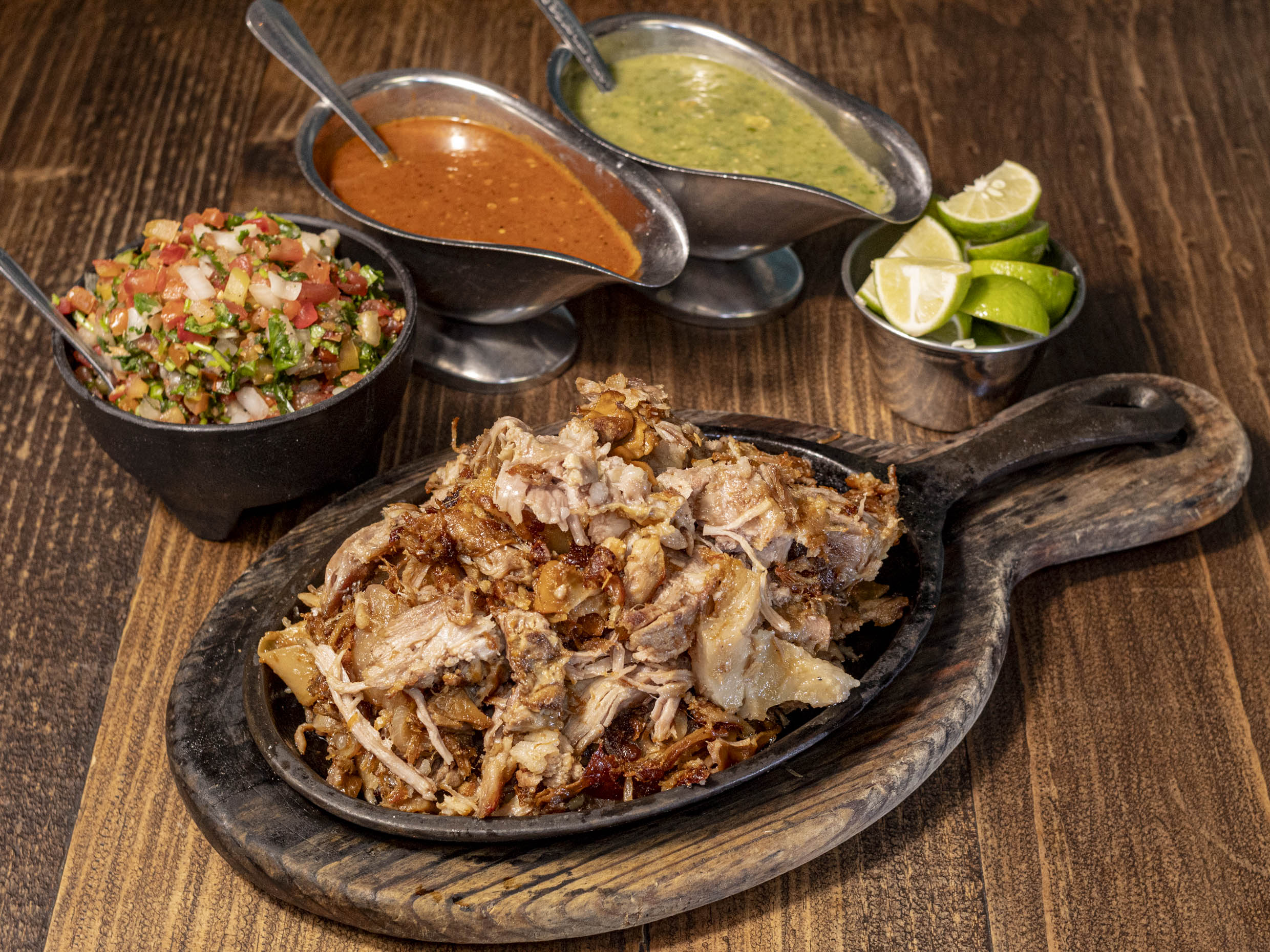 Carnitas, lechuga, tomate, chipotle y aguacate.