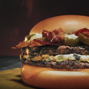 Un manjar pa' los de buen diente: pan parrillero bien doradito, doble carne jugosa, queso que se desborda, tocinito crujiente y un combo de aderezo de la casa + chipotle que le ponen el toque chingón 🌶️. Coronada con rodajas de cebolla pa' rematar el antojo como se debe. La hamburguesa que no pide permiso… pura atascada deliciosa.