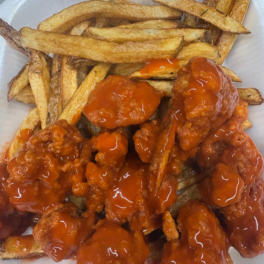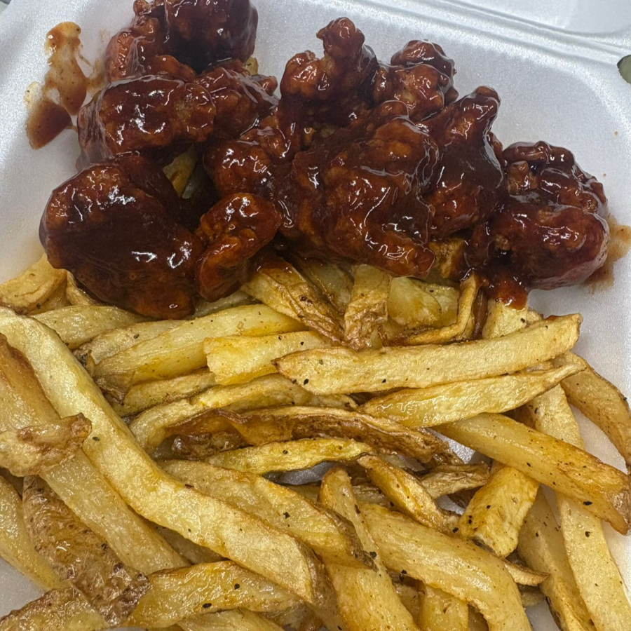 200gr Bonless, con salsa bbq y papas fritas.