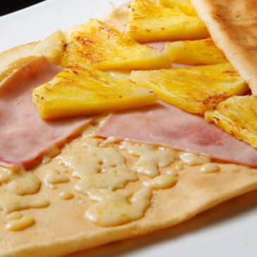 Jamon de pavo, queso mozarella, piña y queso crema.