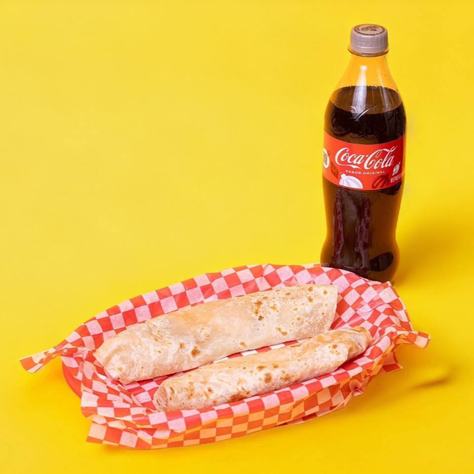 Dos burritos y bebida a elección. Para los que tienen más hambre.