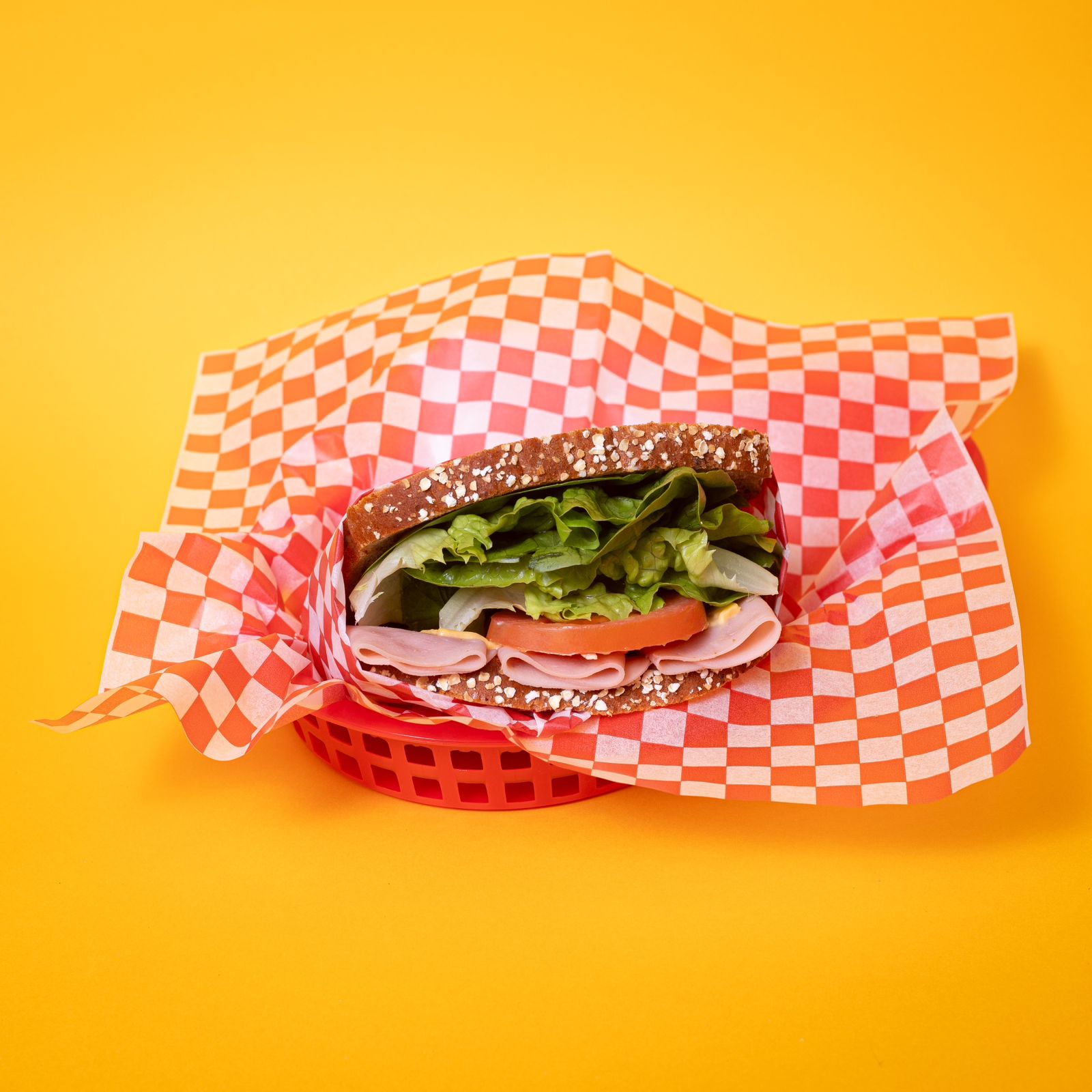 Lechuga, tomate, jamón, queso, mayonesa y pan integral.
