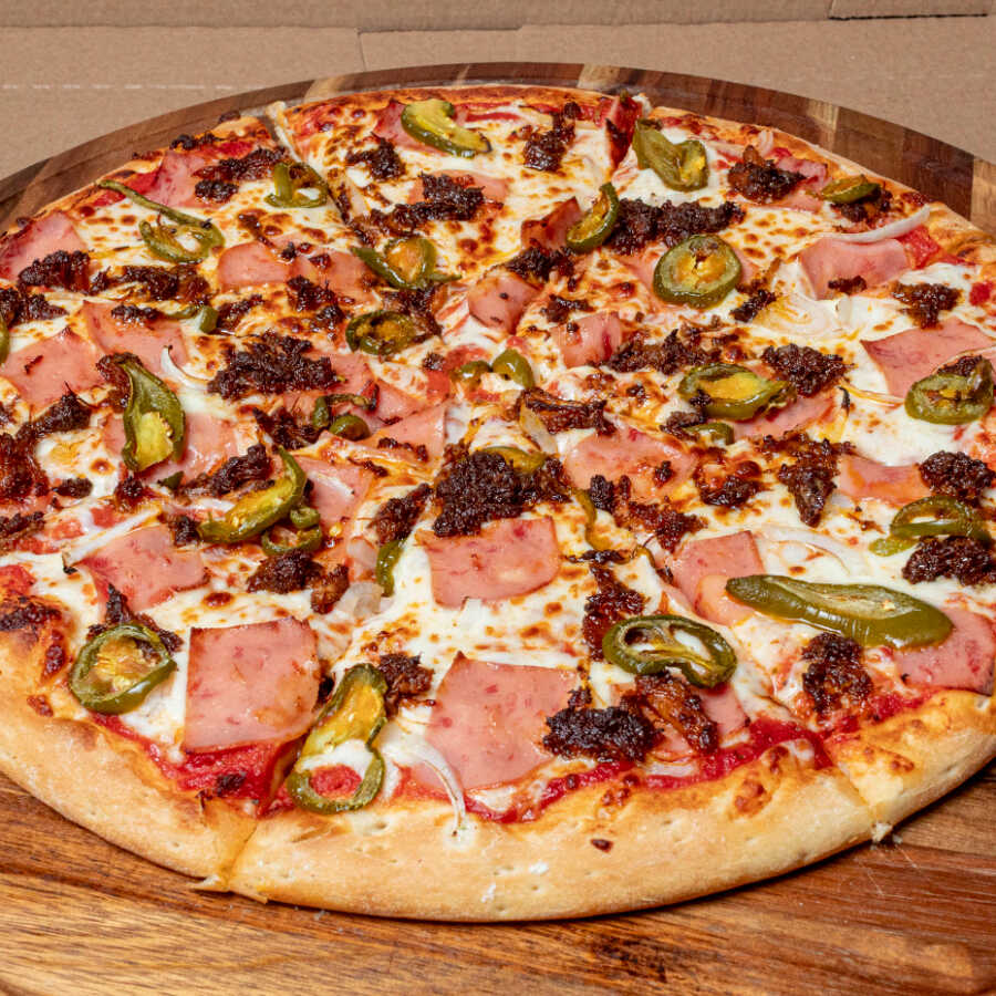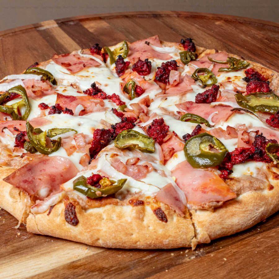 chorizo, frijoles, jamón, tocino, cebolla y jalapeño 30 cm
