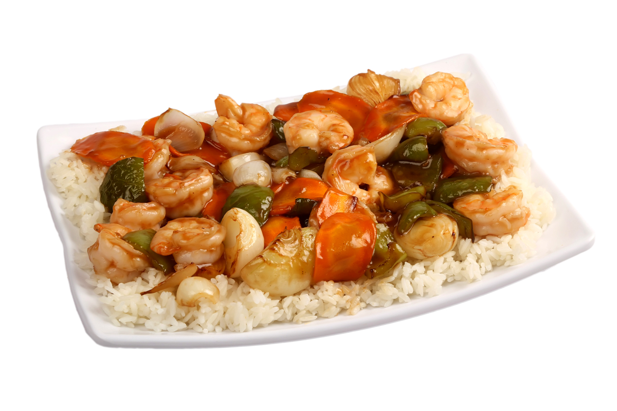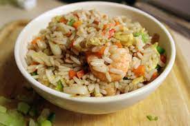 Arroz frito de verduras y camarón.
