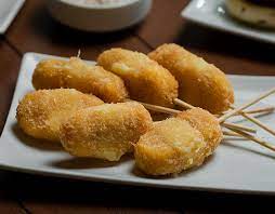 Brochetas de queso empanizados.