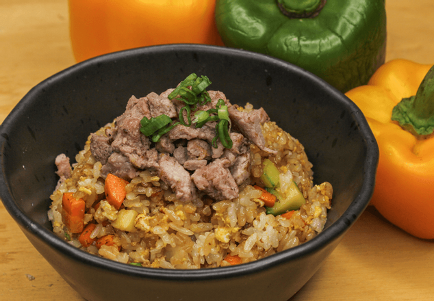 Arroz frito de verduras y res.