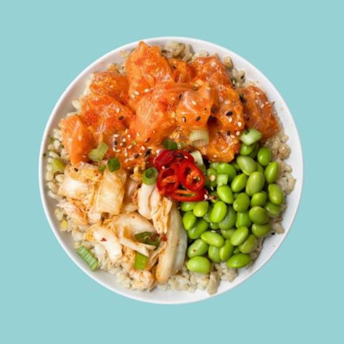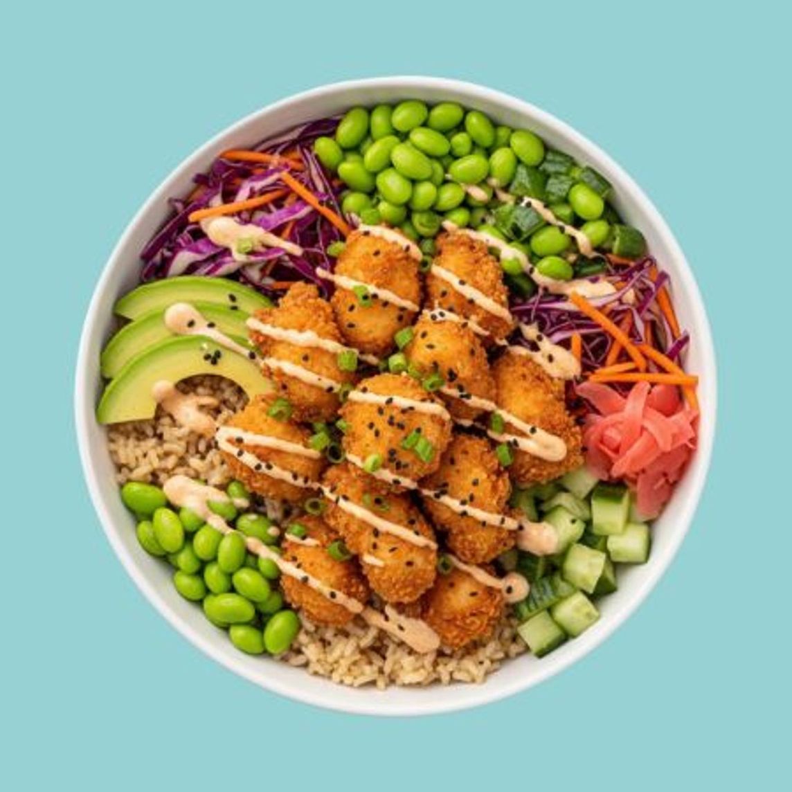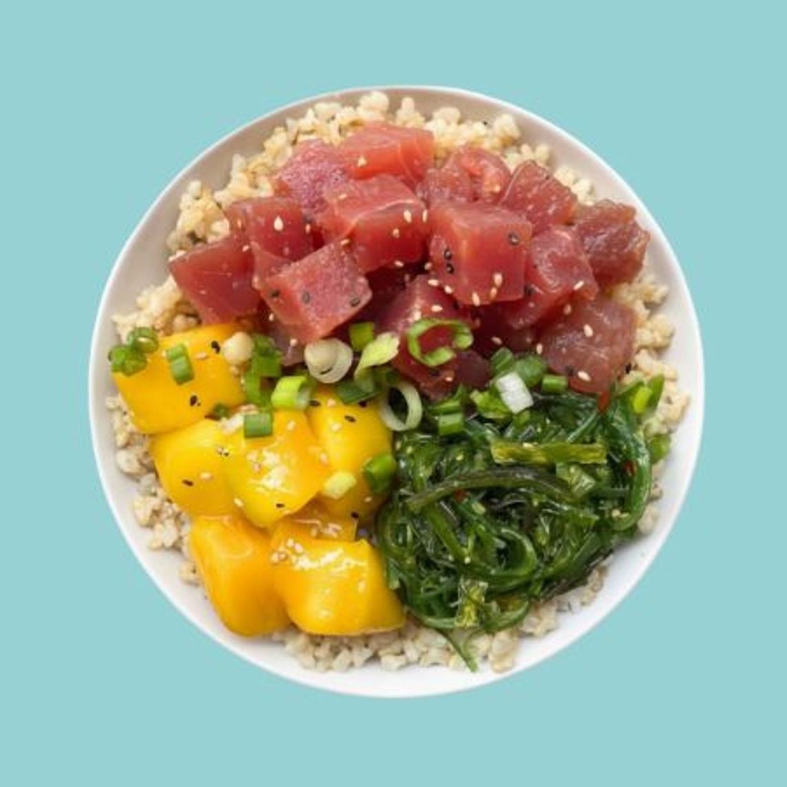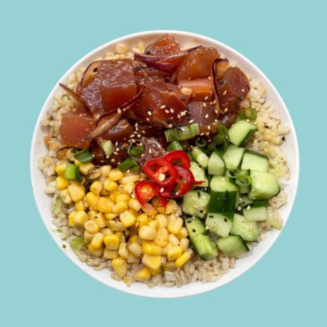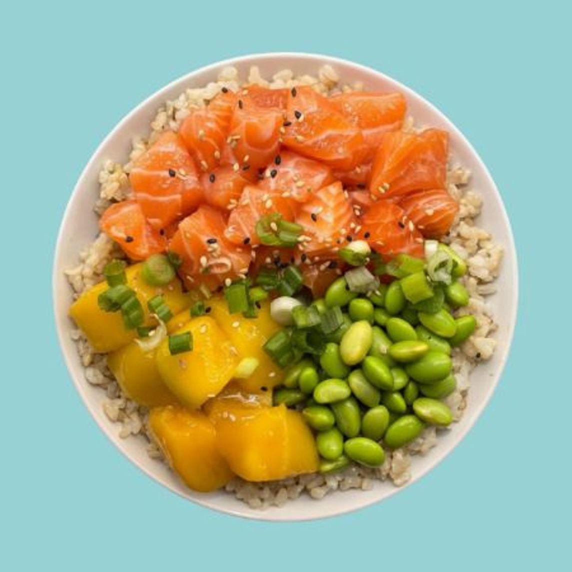 El Poke bowl favorito para el día a día. Dos proteínas a elegir, base fresca y toppings balanceados para una comida completa que te deja satisfecho sin sentirte pesado. Ideal para comer bien y seguir con tu día. Hecho al momento y totalmente personalizable.