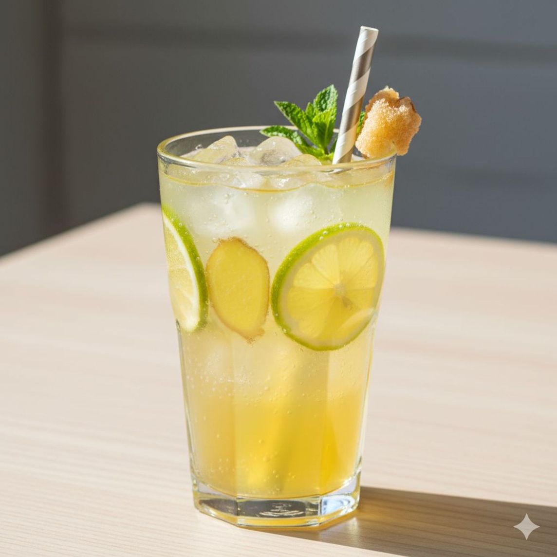 Limonada artesanal fresca con un toque natural de jengibre. Refrescante, ligera y perfecta para equilibrar tu bowl.
