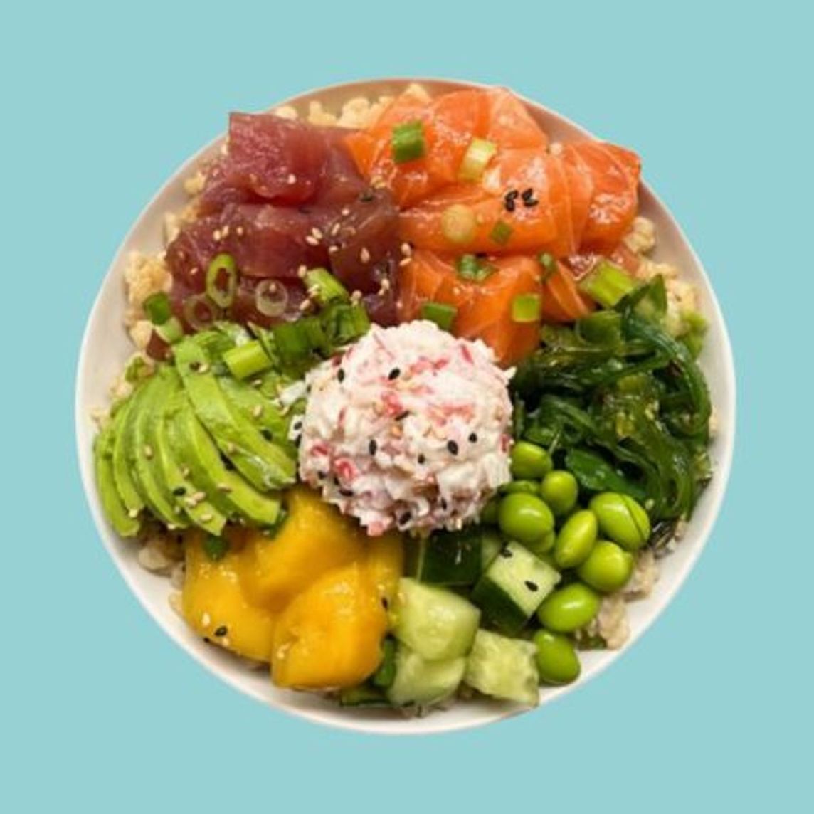 El Poke bowl más completo y saciante de Ona Poke. Tres proteínas a elegir, base fresca y toppings balanceados para una comida poderosa que sí te deja satisfecho. Ideal si tienes hambre real o necesitas energía que dure. Hecho al momento, ligero pero abundante.
