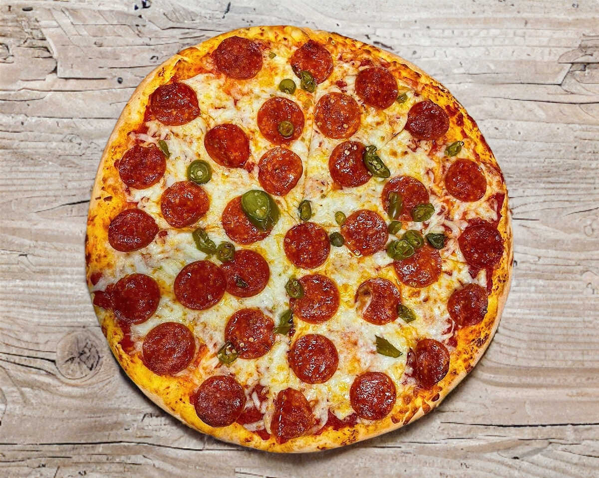 Pizza de Pepperoni con jalapeño. 14" (8 Rebanadas)